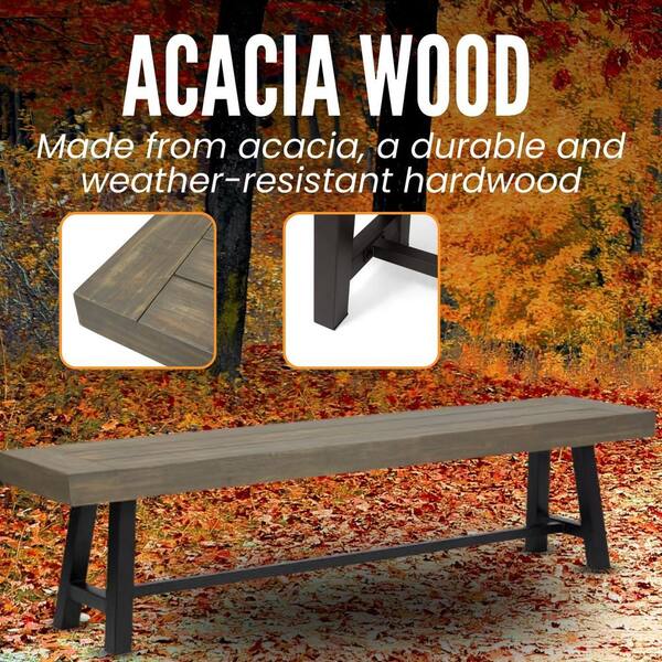 2-Person Seating Capacity Black Finish Acacia Wood Outdoor Ottoman Bench in Rustic Metal Finish