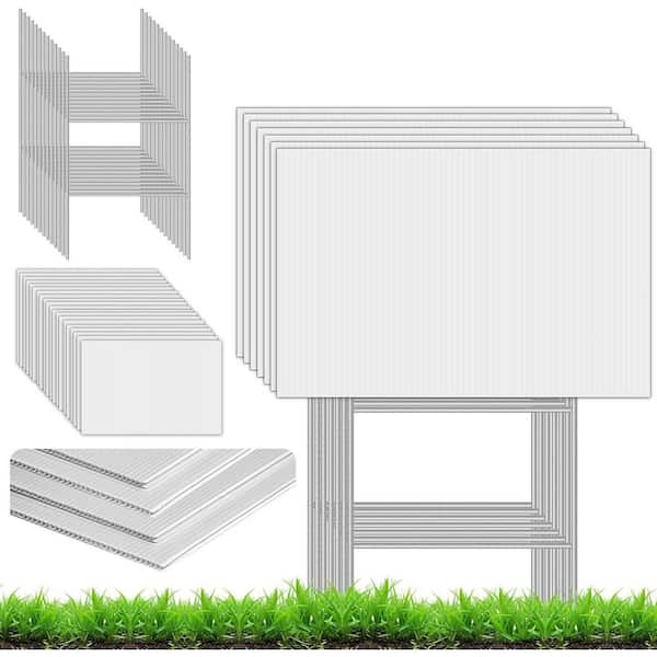 20 Pack 16 x 12 in. White Corrugated Plastic Yard Signs with Metal H-Stakes