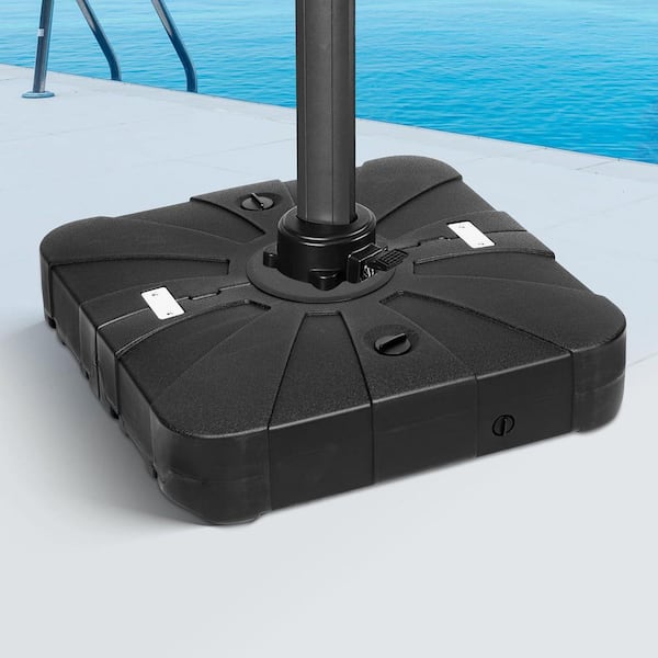 220 lb. Capacity Fillable Mobile Offset Patio Base Market Cantilever Square Stainless Steel Patio Umbrella Base in Black