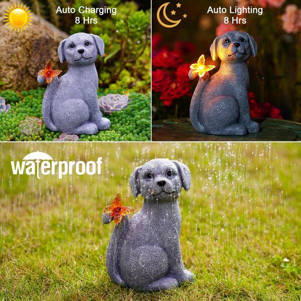 3.94 in. x 5.31 in. x 7.48 in. Dog Solar Decor with Butterfly Outdoor Statues