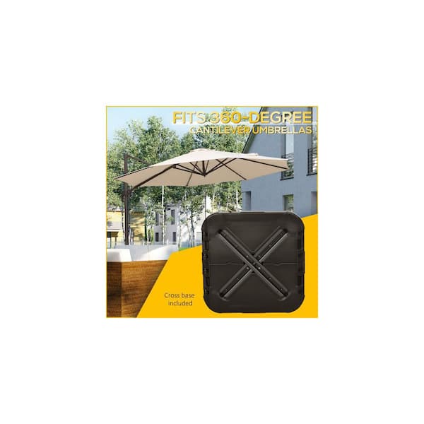 375 lbs. Steel Cross Base Patio Umbrella Base with Easy-Fill Spouts and Wheels in Brown