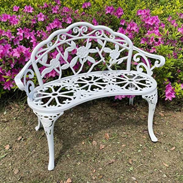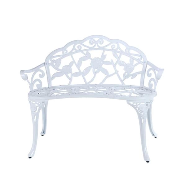 39 in. x 20 in. x 31.5 in. 2 Person Seat White Aluminum Outdoor Glider Cast Aluminum Outdoor Furniture with Floral Rose