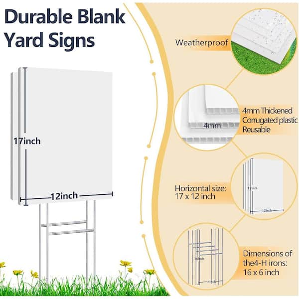 4 Pack 17 x 12 in. White Blank Yard Signs with Stakes, Weatherproof Corrugated Plastic Board