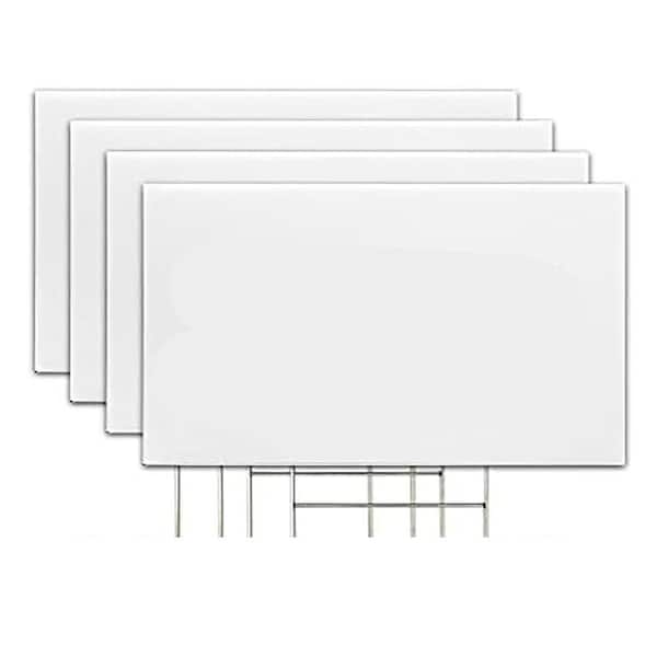 4 Pack 18 x 12 in. White Plastic Yard Signs with Metal H-Stakes