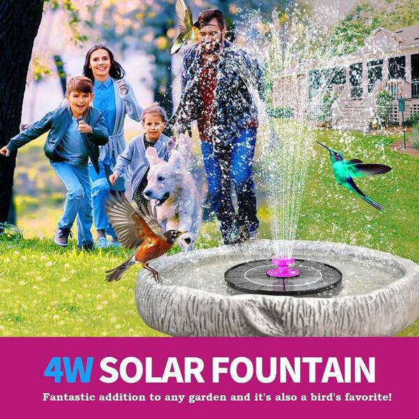 4-Watt Solar Powered Bird Bath Fountain Pump Outdoor Water Feature Hot Pink 8 Nozzles Hummingbird Garden Pond Patio