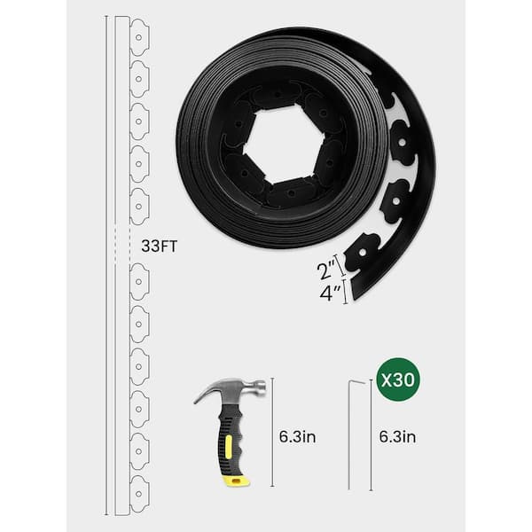 4 in Tall, 33 ft. Landscape Edging with Hammer and Staples, Black