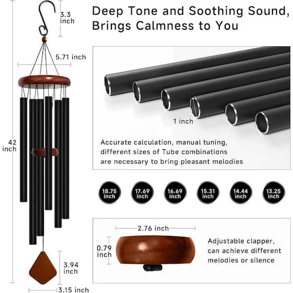 42 in. Large Deep Tone Wind Chimes for Outside with 6 Heavy Duty Tubes