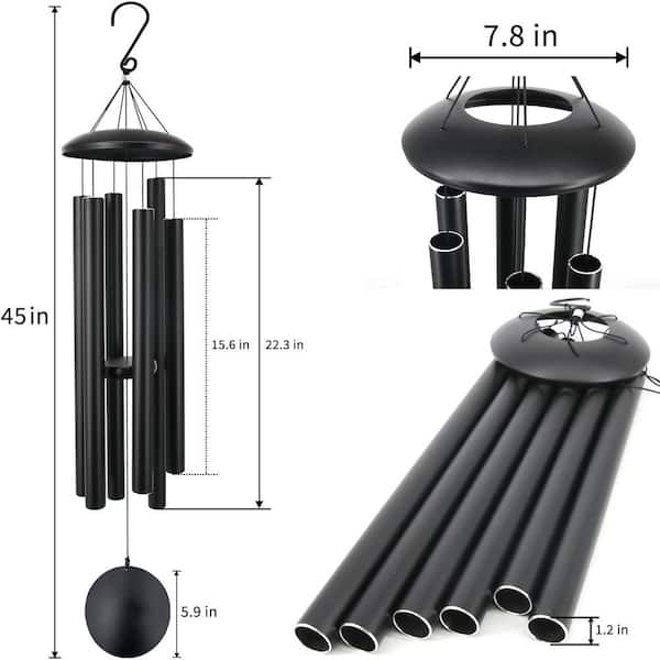 45 in. Large Wind Chimes with 6 Heavy Tubes Deep Tone Outdoor Garden Hanging Decor Black