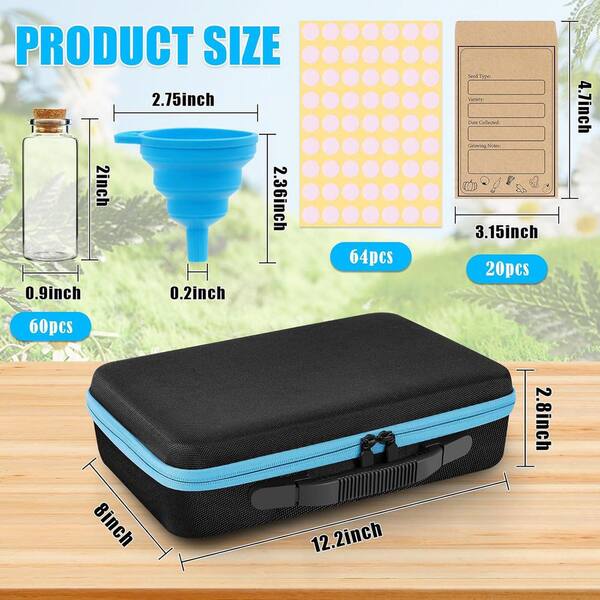 60 Slots Seed Storage Organizer with 20 Envelopes Double Zipper Bag Label Stickers Seed Container for Garden Plants