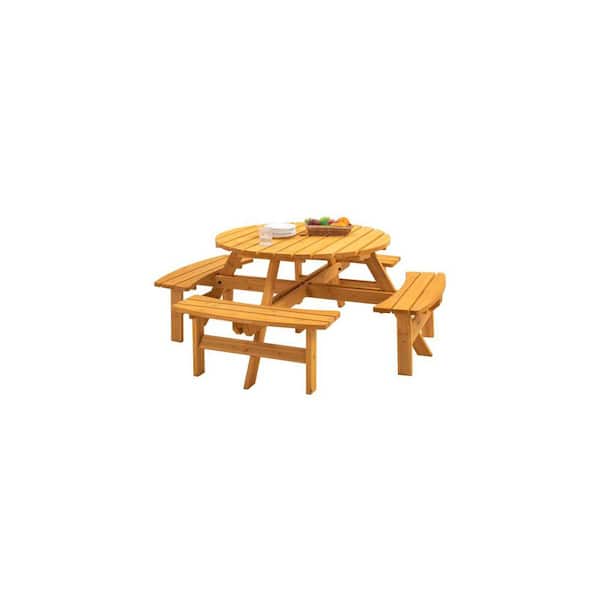 70.07 in. Unfinished Wood Round Wood Picnic Table Seats 8 People with 4 Built-in Benches, 2220 lb. Capacity, Natural