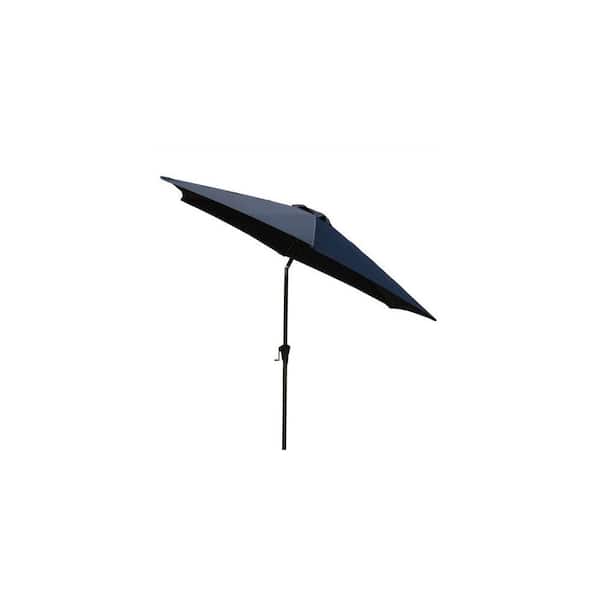 8.8 ft. Outdoor Aluminum Patio Umbrella Market Umbrella with Resin Base, Push Button Tilt and Crank Lift in Navy Blue