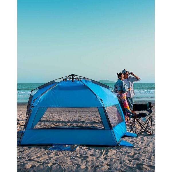 8 ft. x 8 ft. Blue Beach Tent for 3-4 Person with UPF 50 plus UV Protection