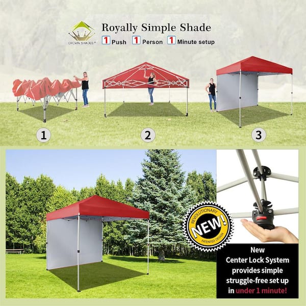 8 ft. x 8 ft. Pop Up Canopy with 1 Side Wall One Push Setup For Events Parties Camping with Cover Bag Red Color