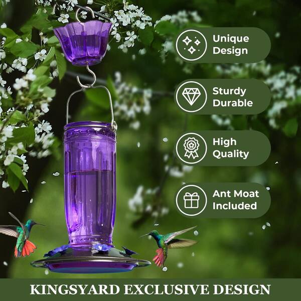Attractive Purple Glass Hanging Hummingbird Nectar Feeder-16 oz. with Ant Moat 1-Pack