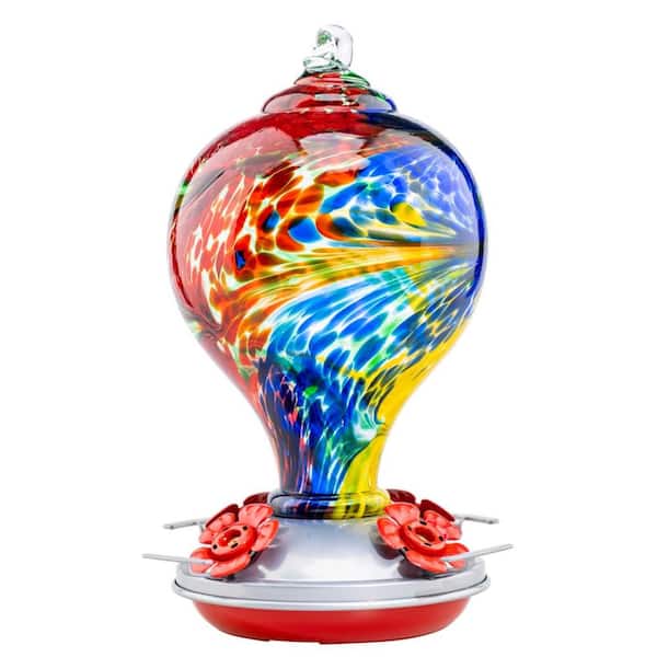 Convenient Nebula Glass Hanging Humming Bird Nectar Feeder-32 oz. with Ant Moat (1-Pack)