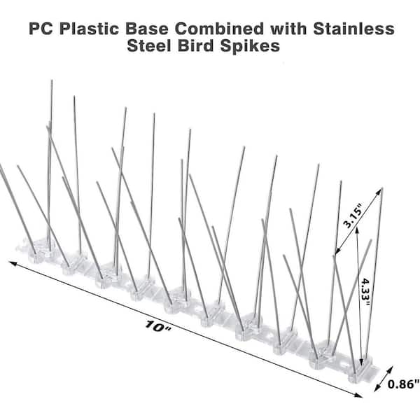 Flexible Stainless Steel Bird Spikes with Plastic Base, 4.1 ft. Coverage for Roof, Fence, Mailbox, Window
