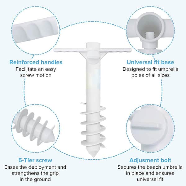 HeavyDuty Plastic Anchor Patio Umbrella Base 6. 89in. Universal One Size Fit Most of Umbrella White with 5 Spiral Screw