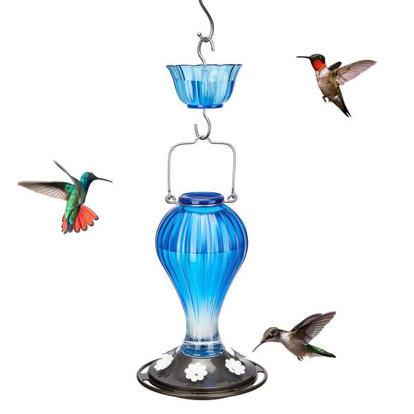 High Quality Blue Glass Hanging Humming Bird Nectar Feeder-24 oz. with Ant Moat (1-Pack)