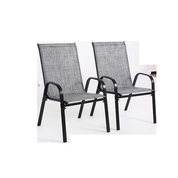 Outdoor Camping Chairs with Breathable Fabric and Armrest High Backrest in Gray (Set of 2)