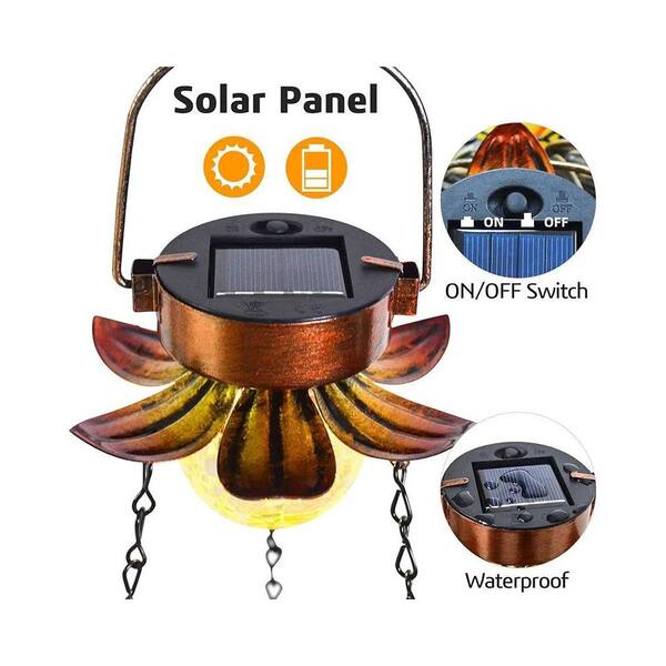 Outdoor Hanging Bird Feeder with 360° Feeding Ports, Flower Design, Weather-Resistant, Glass and Metal in Yellow