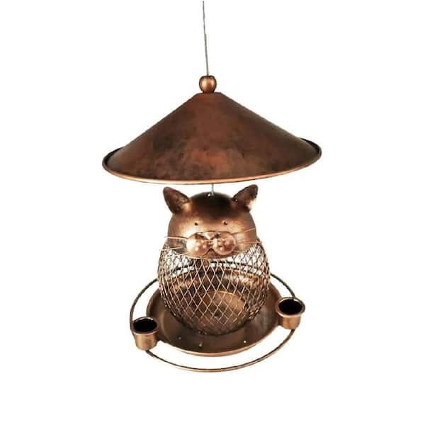 Outdoor Hanging Bird Seed Feeder with 360° Feeding Ports, Round Perch, Metal Construction and Weatherproof in Copper