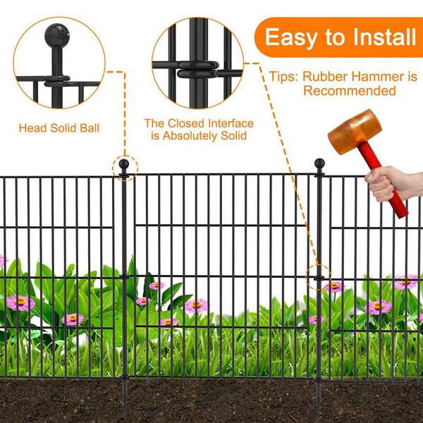 Rustproof 10-Panel Garden Fence with Gate, 32in(H) x 23. 6ft(L), No-Dig Metal Wire Animal Barrier for Dog, Rabbit & Yard