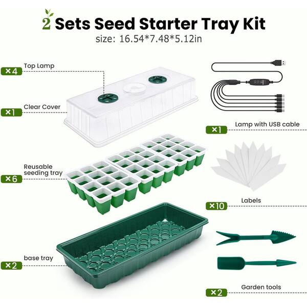 Seed Starter Tray with Grow Lights, 72 Cells Silicone Seed Starter Kit with Humidity Dome, 3 Lights, 2-Pack