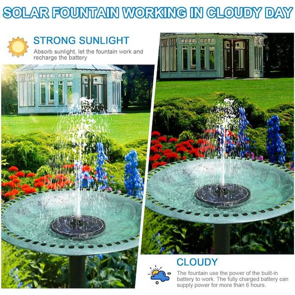 Solar Bird Bath Fountain with Glass Panel 8 Nozzle Water Spraying Cloudy Day Mode Fixer for Garden Black