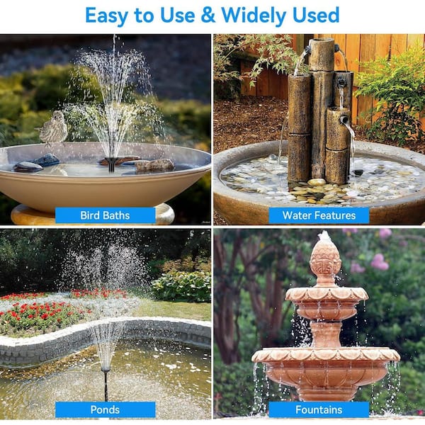 Solar Fountain Pump 6.5W for Bird Bath w/ Dry-run Protection Double-layer Nozzles and 5Ft Tubing for Pond Water Feature