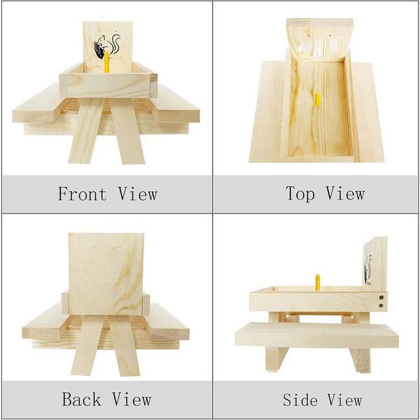 Solid Wood Funny Squirrel Picnic Table Feeder with Corn Cobs Holder and Peanut Tray