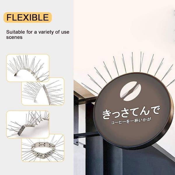 Stainless Steel Bird Spikes, 4 in. x 3 in., 6-Needle, 360° Coverage, Weather-Resistant