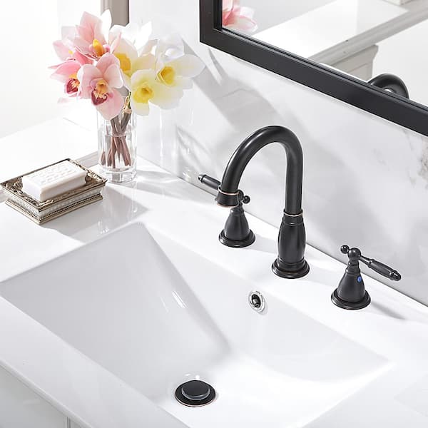 8 in. 2-Handle 3-Hole Widespread Bathroom Faucets with Valve and Metal Pop-Up Drain in Oil Rubbed Bronze