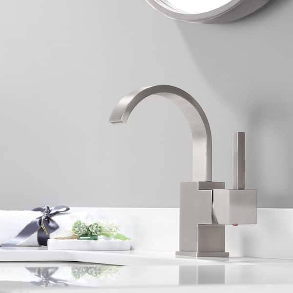 Single Hole Bathroom Sink Faucet, Waterfall RV Bathroom Faucet Fits 1-Hole or 3-Hole in Brushed Nickel