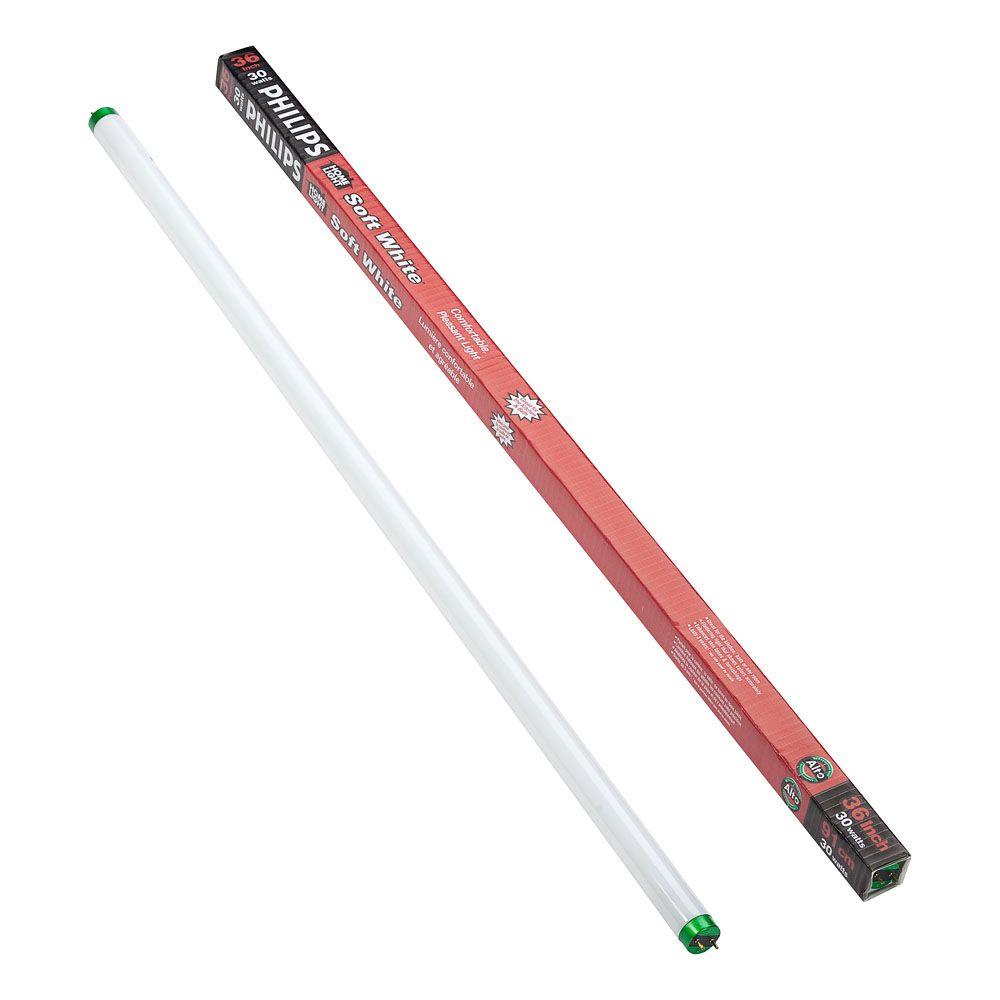 The Philips 32-Watt Soft White Linear Fluorescent Light Bulb (2-Pack) can be used in almost any room of your home or business including the kitchen or bathroom. These light bulbs cast a warm, white glow that can shine up to 20,000-hours. These bulbs have a T8 shape with a bi-pin base.
