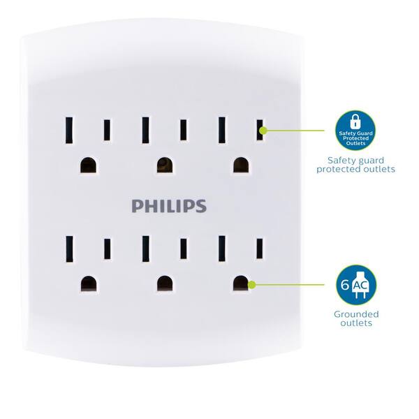 • Turn 2 outlets into 6 with the Philips 6 outlet adapter
