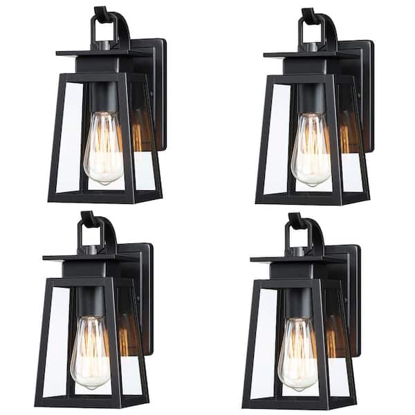 1-Light Black Outdoor Wall Lantern E26 Base Max 60-Watt (4-Pack)