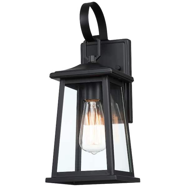 1-Light Black Wall Sconces Outdoor Fixture With Clear Glass E26 Base