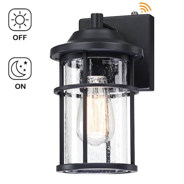 1-Light Outdoor Black Wall Fixture with Dusk to Dawn Sensor (E26 Base)