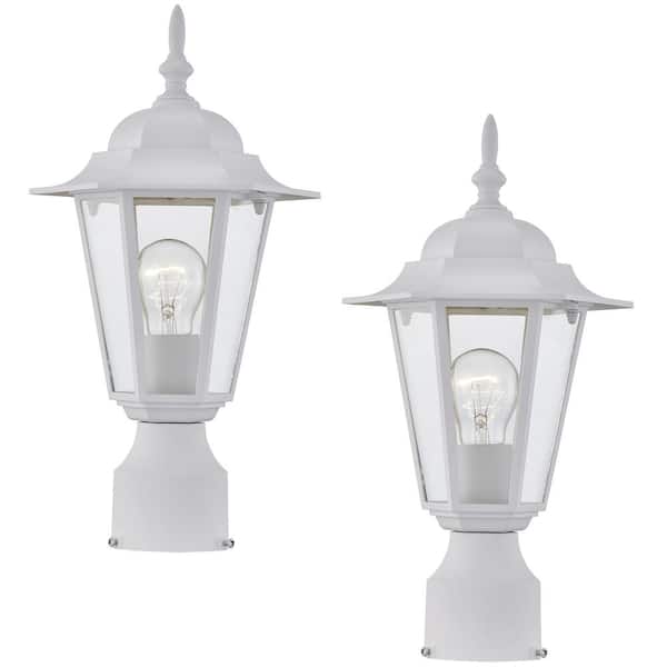 1-Light Textured White Outdoor Post Light with Clear Glass(2-Pack)