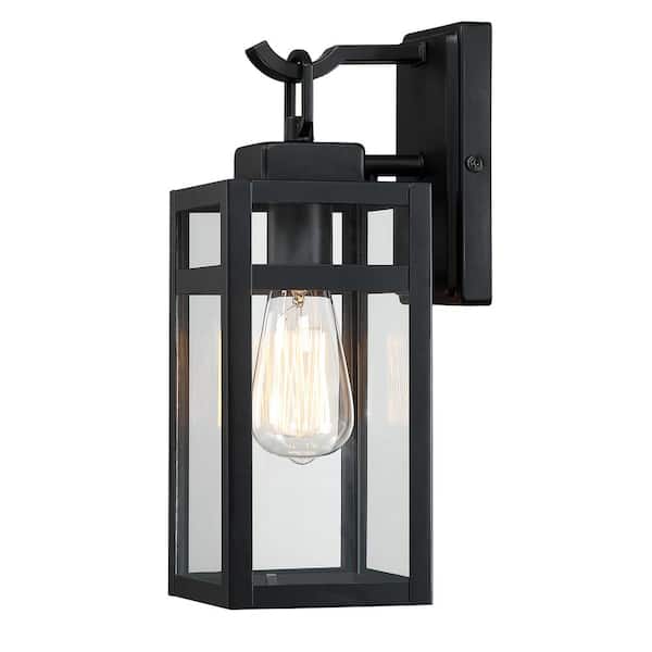 13.88 in. H 1-Light Black Modern Outdoor/Indoor Wall Light Sconce Lantern with No Bulb Included