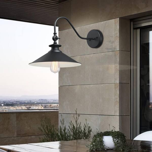 13 in. Black 1-Light Outdoor Hardwired Barn Sconces Light with Metal Shade