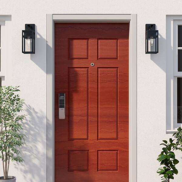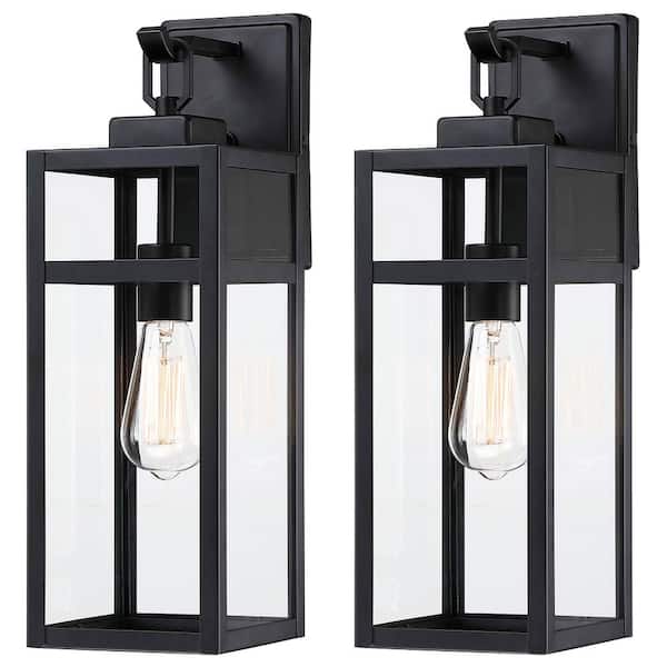 17.99 in. 1-Light Black Outdoor/Indoor Wall Sconce Fixture With Clear Shade