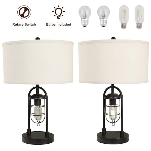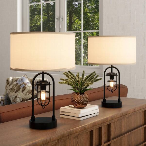 21 in. Industrial Black Table Lamp Set with Night Light and Bulds Included (Set of 2)