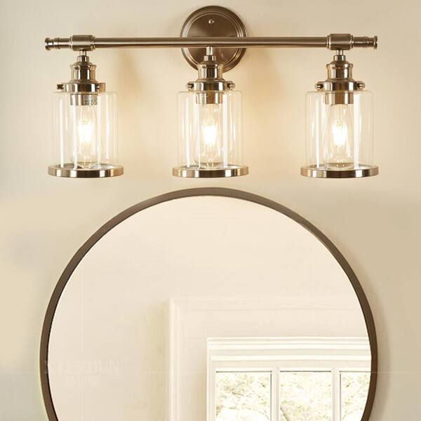 23.5 in. 3-Light Brushed Nickel Vanity Light with Clear Glass Shades and Bathroom Hardware Set (5-Piece)