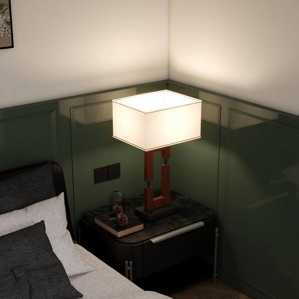 25.9 in. Reddish Brown Table Lamp Set With USB Port (Set of 2)