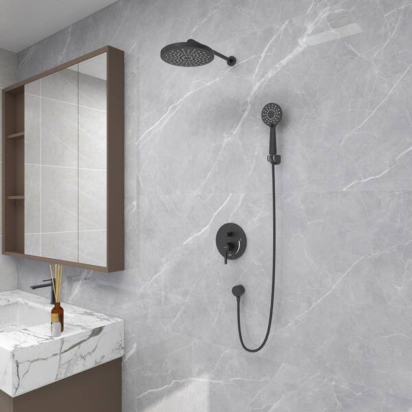 3-Spray Patterns 9 in. Wall Mount Round High Pressure Dual Shower Heads Shower Faucet in Matte Black (Valve Included)
