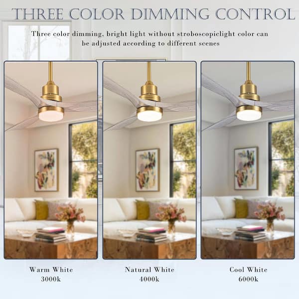 52 in. Indoor/Outdoor Gold Modern Ceiling Fan with LED Light and Remote