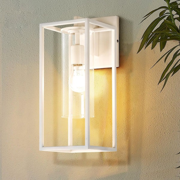 Indoor/Outdoor White Hardwired Wall Lantern Scone with No Bulbs Included