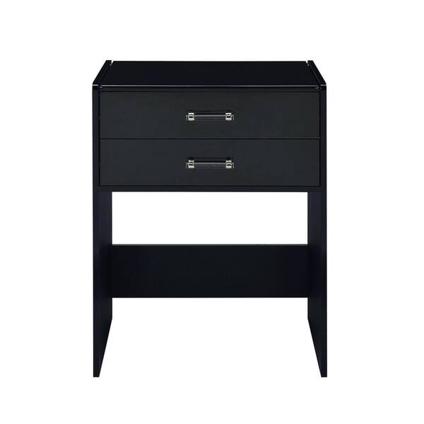 Aurora Glossy Black 3 24 in. Mini Dressing Table with Mirror, Stool, LED and USB