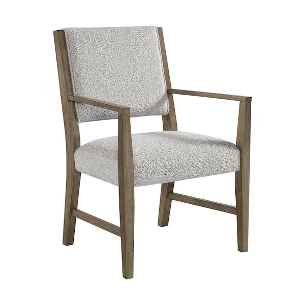 Bassett Oak Wood Light Grey Boucle Fabric Dining Arm Chair (2 Per Carton)